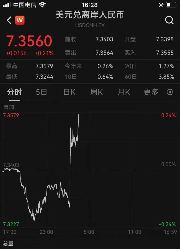 鸿沟发稿,在岸、离岸东谈主民币对好意思元汇率分手报7.3101、7.3560。