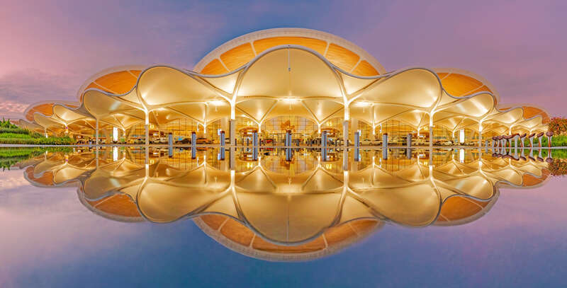 T3航站楼建筑造型以“花”为诡计主题,融入“云山珠水”“花城”的广州性情,建筑造型如鲜花盛放,造成“羊城花冠”的建筑意想,成为展示广州城市派系形象的地标性建筑。